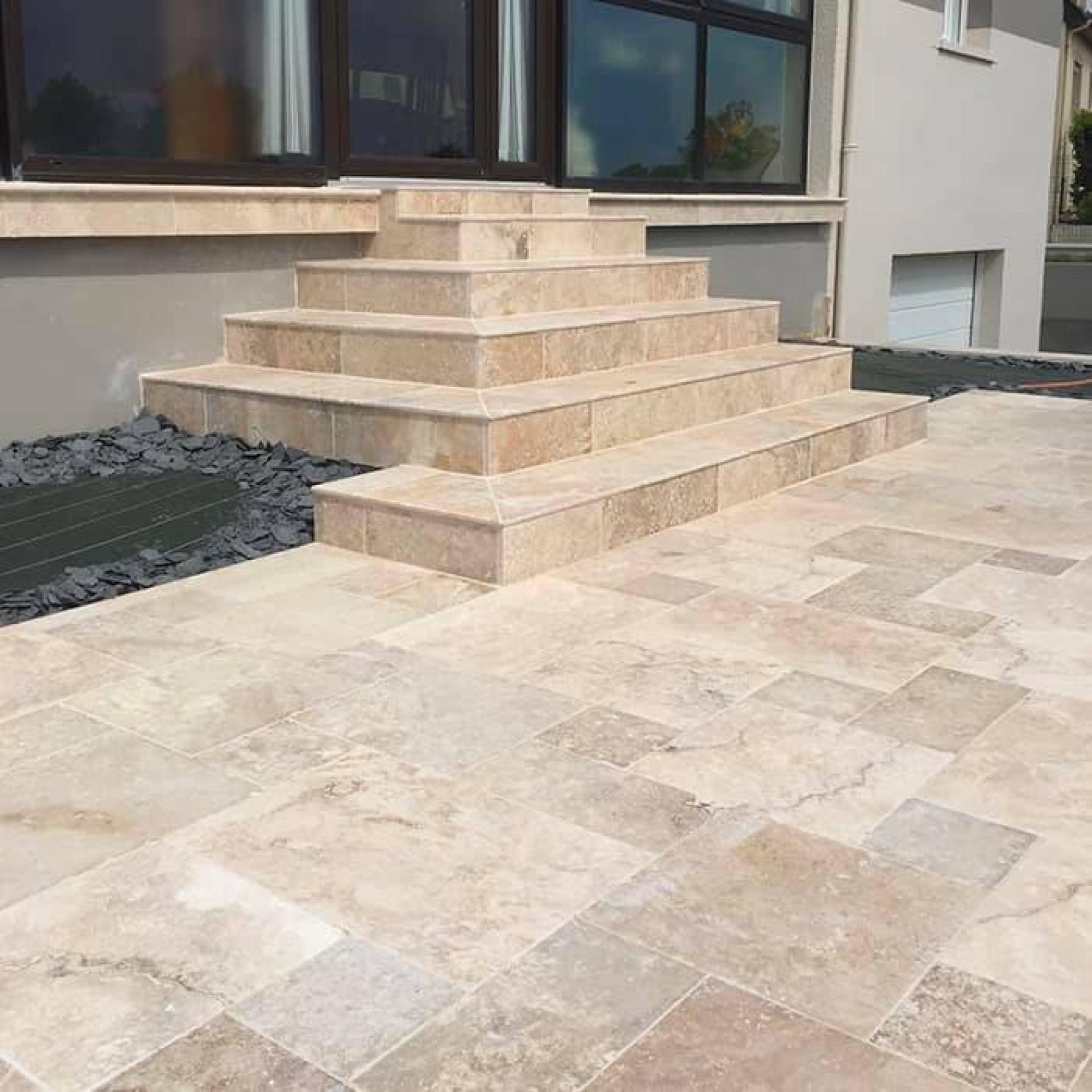Plus futur habillage des marches en travertins.